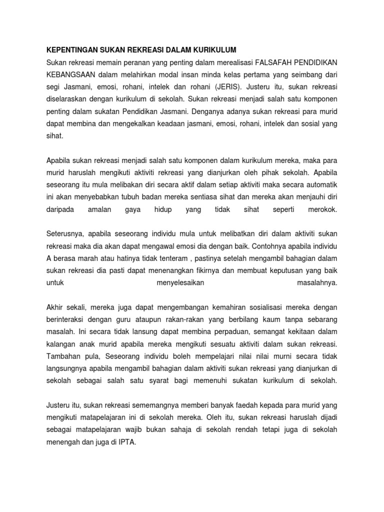 Kepentingan Sukan Rekreasi Dalam Kurikulumnota Pdf